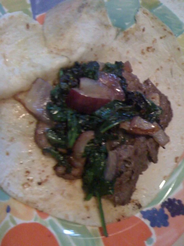 Now recover to let the delicious cheese melt on top of your meal. When thoroughly melted, spinach and onions should be perfect. Begin collecting them with your trust spatula and pile that on the steak.