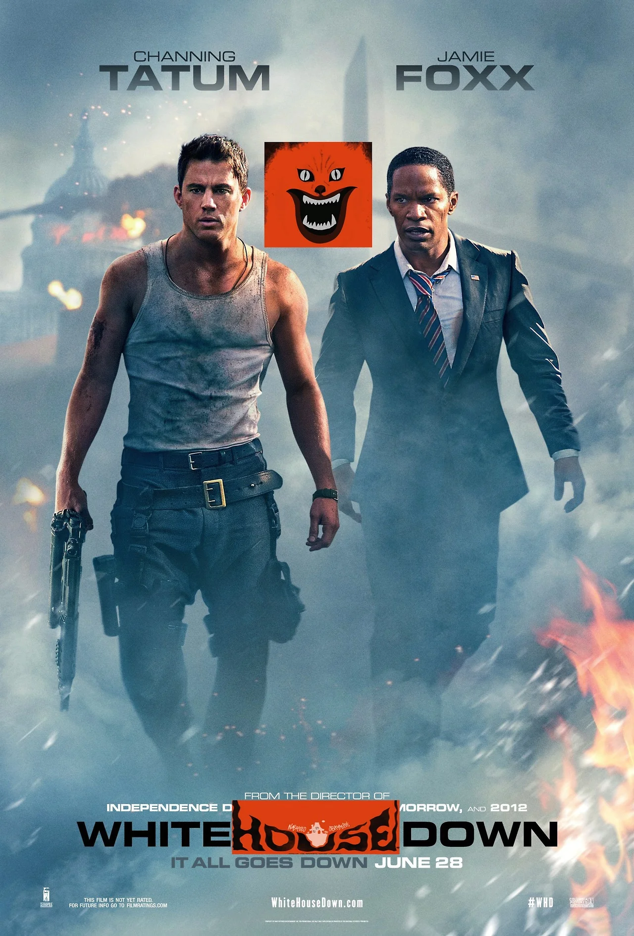June 26, 2013 john lichman film-dot-com: WHITE HAUSU DOWN when the Oval Office furniture starts eating the president’s family, Channing Tatum has to save Jamie Foxx’s life in WHITE HAUSU DOWN. welp, my work here is done. Read Film.com’s review of the *actual* White House Down.