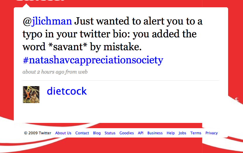 the joke: "Bio: online producer for the rotten tomatoes show, idiot savant on/offline and the andy kaufman of journalism."