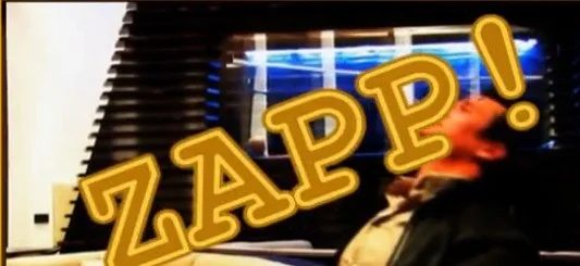 It involves a man being shot and “ZAPP" rolling onto the screen.